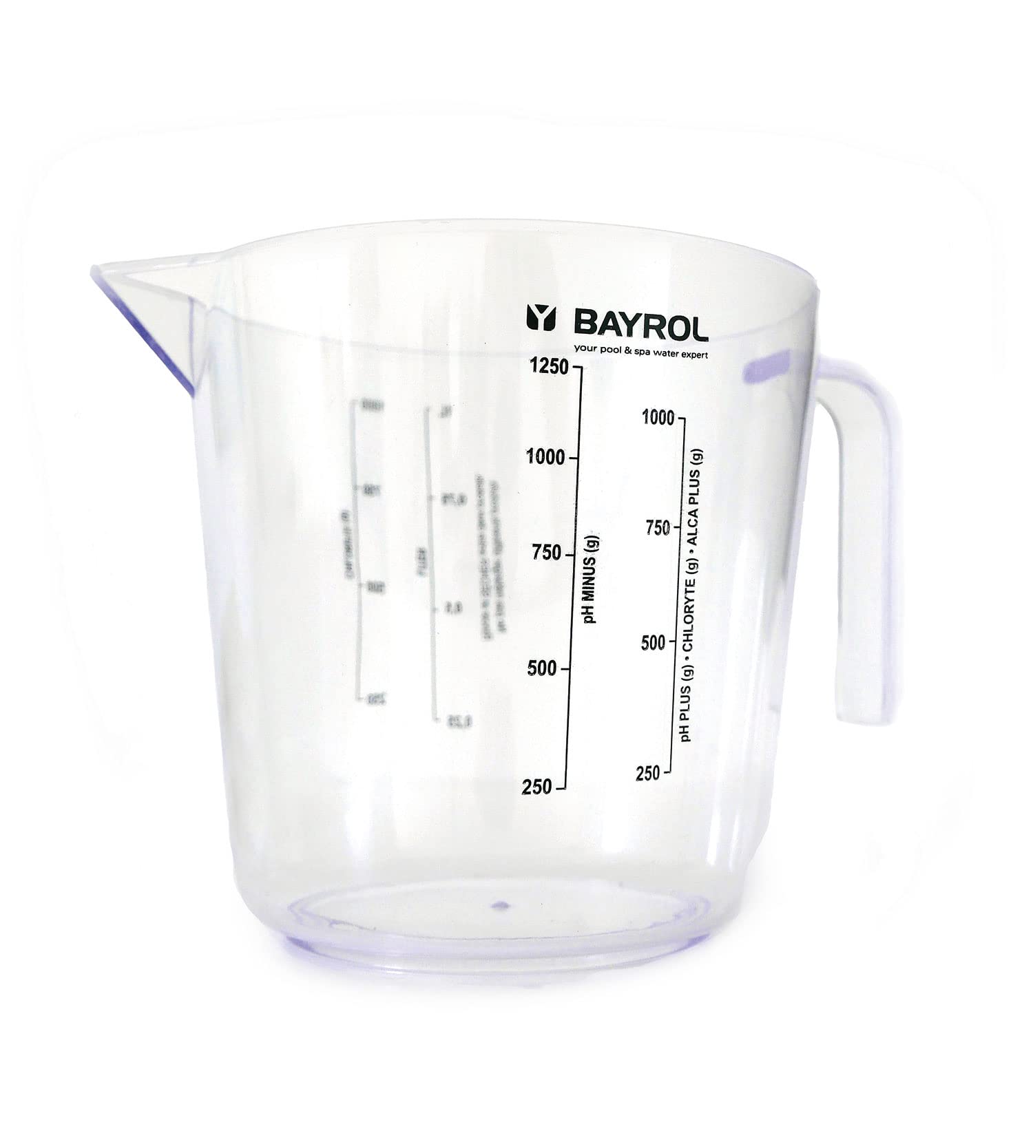 En plastique résistant, le Pot doseur 1 L permet les graduations en kilo (kg) et en litres (L) pour mesurer facilement la quantité exacte de produit nécessaire au traitement de votre bassin.
